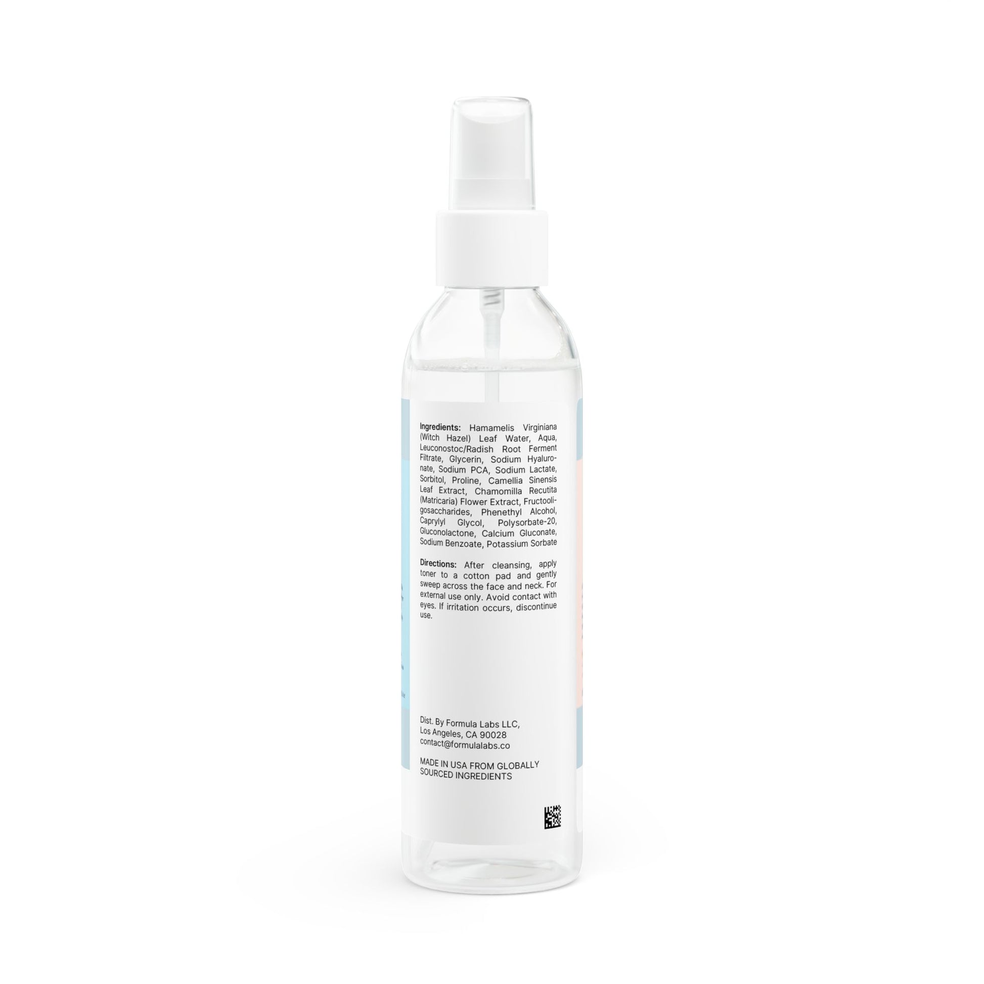 Ingredients: Hamamelis Virginiana (Witch Hazel) Leaf Water, Aqua, Leuconostoc/Radish Root Ferment Filtrate, Glycerin, Sodium Hyaluronate, Sodium PCA, Sodium Lactate, Sorbitol, Proline, Camellia Sinensis Leaf Extract, Chamomilla Recutita (Matricaria) Flower Extract, Fructooligosaccharides, Phenethyl Alcohol, Caprylyl Glycol, Polysorbate-20, Gluconolactone, Calcium Gluconate, Sodium Benzoate, Potassium Sorbate.