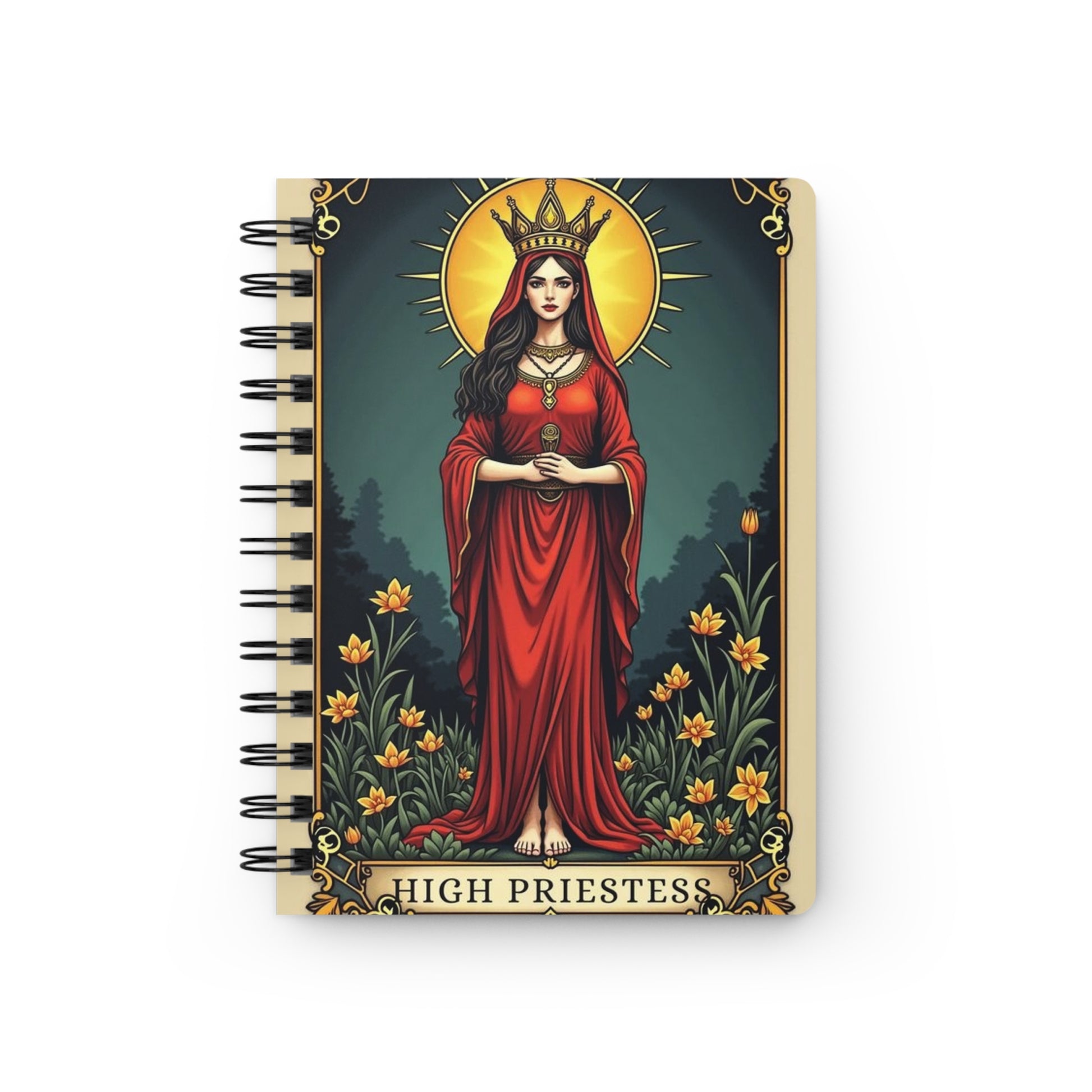 This vibrant Spiral Bound Journal is perfect for creativity and self-expression. Its stunning cover, featuring a mystical high priestess enveloped in vibrant colors, invites inspiration and creativity. Ideal for jotting down thoughts, sketches, or journaling, this journal fits seamlessly into your daily life. Whether you’re a writer, artist, or someone who enjoys keeping track of their thoughts, this journal is the perfect companion. It makes a thoughtful gift for friends and family during special occasions like birthdays, holidays, or simply to celebrate a personal journey. Immerse yourself in your creative pursuits with a journal that sparks joy and inspiration.