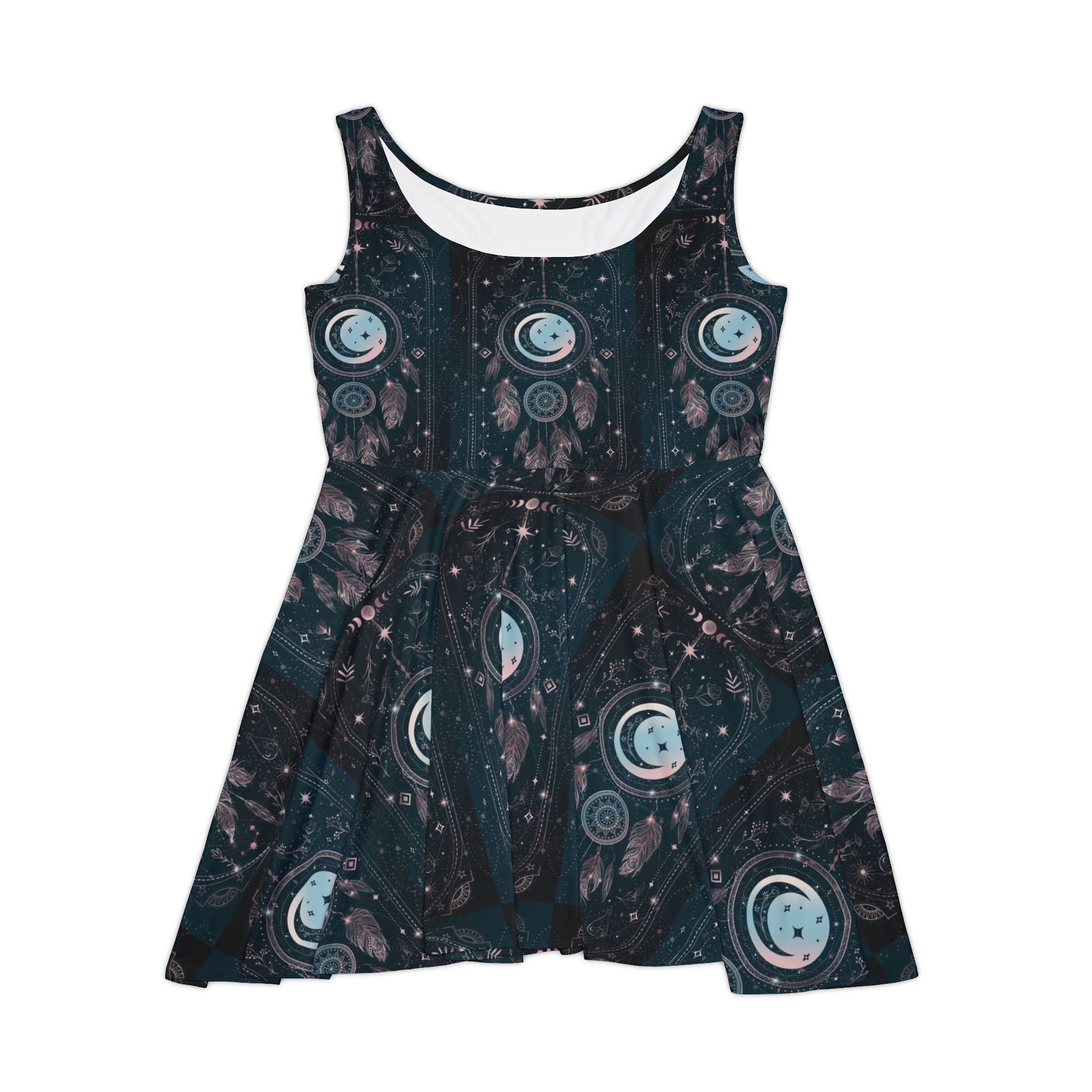 Mystical Space Print Skater Dress, Perfect for Festivals and Casual Outings, Women's Fashion, Boho Style, Summer Dress, Unique Party Dress