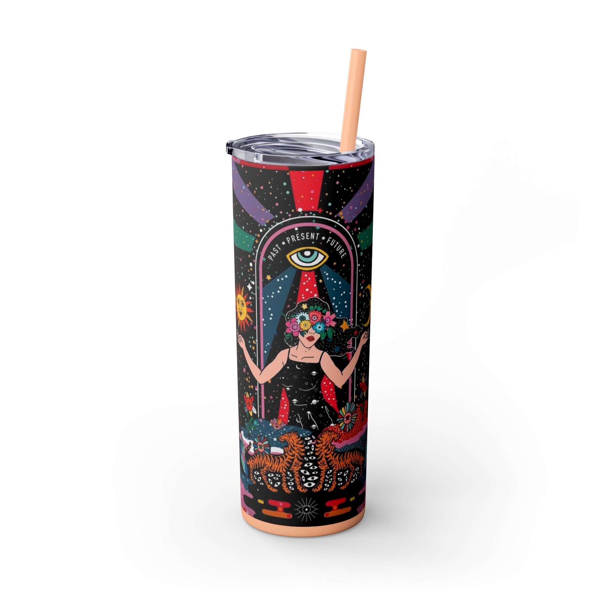 Vibrant Cosmic Skinny Tumbler with Straw, 20oz - Perfect for Astrology Lovers, Celestial Gifts, Travel Mugs, Drinkware, Sunshine and [...]